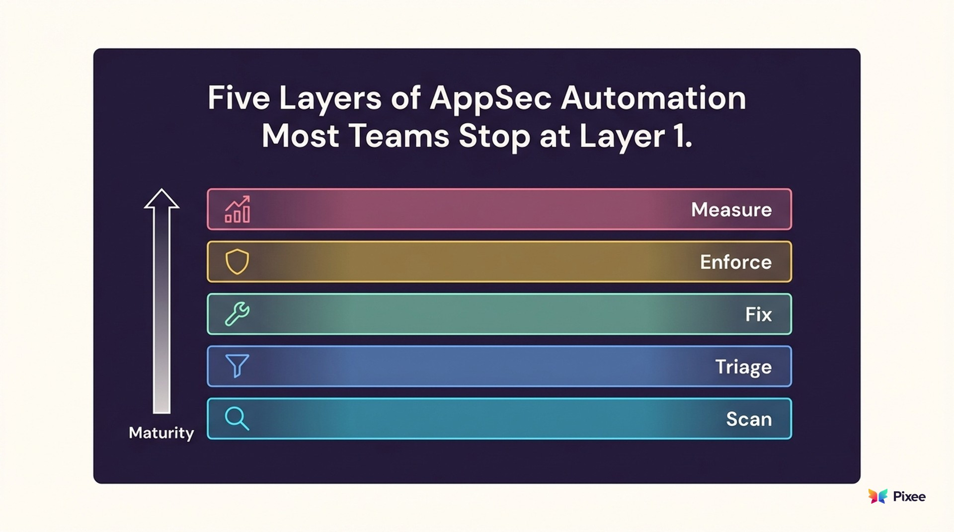 Application security automation is not a single capability. It is a stack. And most organizations have automated the easiest layer (scanning), skipped the hardest layers (triage and remediation), and wonder why their vulnerability backlogs keep growing despite having "automated security."