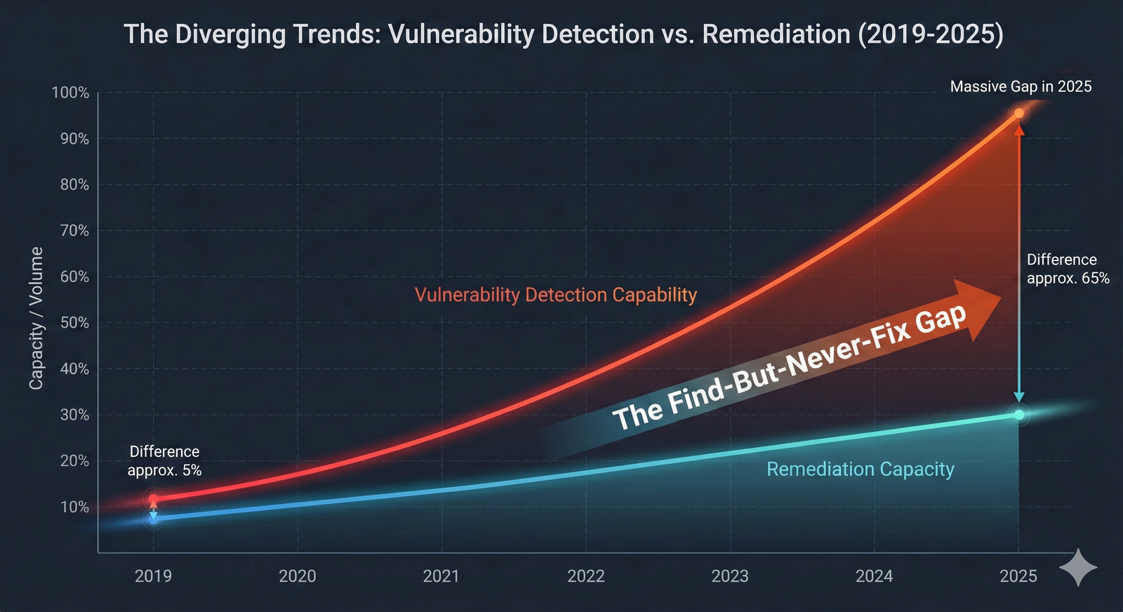 These forces have created the widening gap between risk detection and risk reduction—the "find-but-never-fix" crisis.